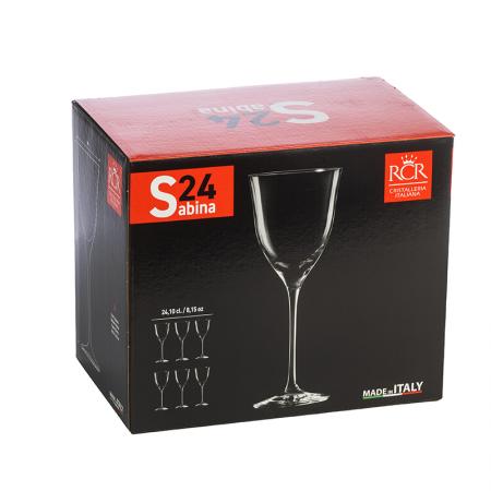 Описание: Чаши: Ø 8.1 см. Височина: 20.3 см. Вместимост: 240 мл. Стилен комплект от 6 чаши за вино, произведени от италианската фирма RCR Crystal. Чашите създават усещане за наслада от вкуса на виното с нестандартната си форма и изящен дизайн. Подходящи за почистване в съдомиялна машина. Подарете си финес и красота на масата с италианско качество.