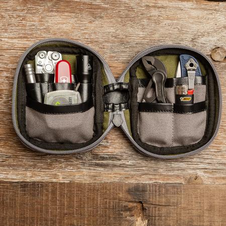 Описание: Материал: импрегниран брезент , Размери: 12.5 х 17 x 4 см , Цвят: Сив