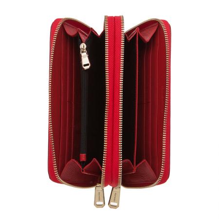 RSC0505: Дамско портмоне с двоен цип цвят Маслено Червено ROSSI