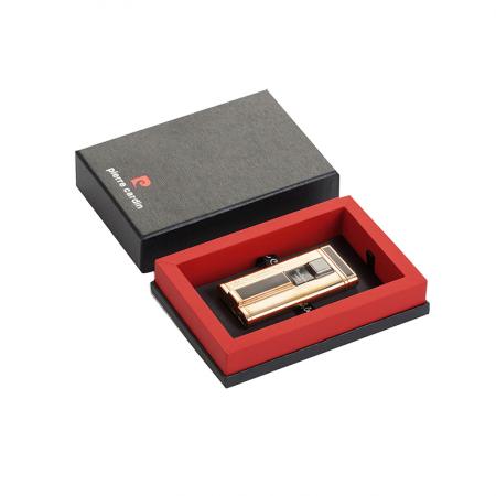 Описание: Ветроупорна запалка. Ергономичен дизайн. Клапан за многократно зареждане ( зарежда се с газ за запалки). Цвят: черно със златно. Материал: метал със златно и черно покритие. Размер: 3,5 см * 1 см * h 7,5 см Тегло: 76,4 гр. Начин на запалване: чрез докосване на сензор. Гаранционен срок: 2 години. Предлага се в луксозна кутия.