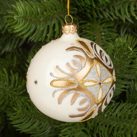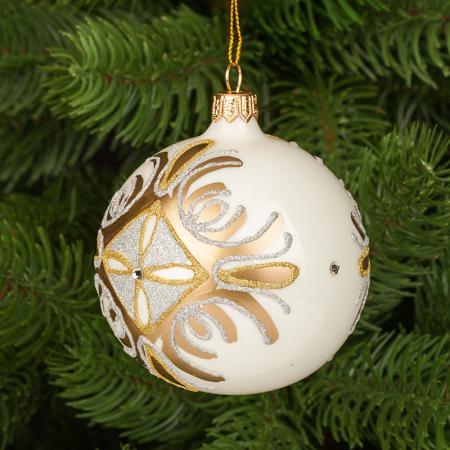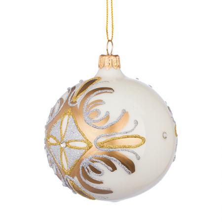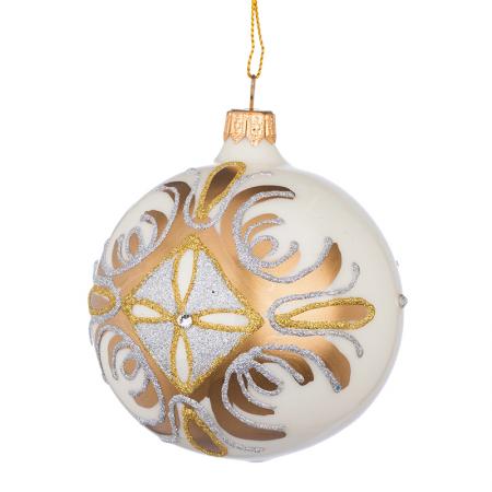 RM02501S: Стъклена бяла топка със златна декорация