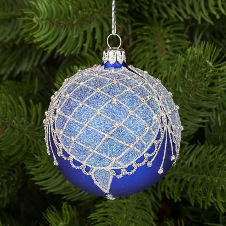 Продукти КОЛЕДНА УКРАСА За елхата Стъклени играчки Коледна синя топка със сребърна декорация