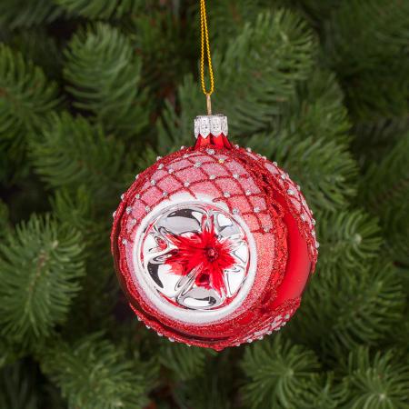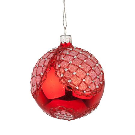Продукти КОЛЕДНА УКРАСА За елхата Стъклени играчки Стъклена червена топка със сребърна декорация