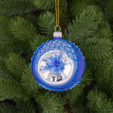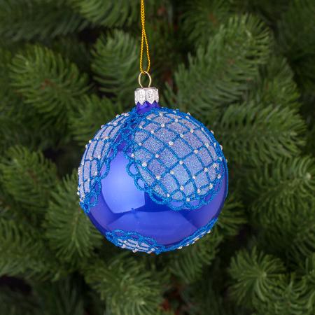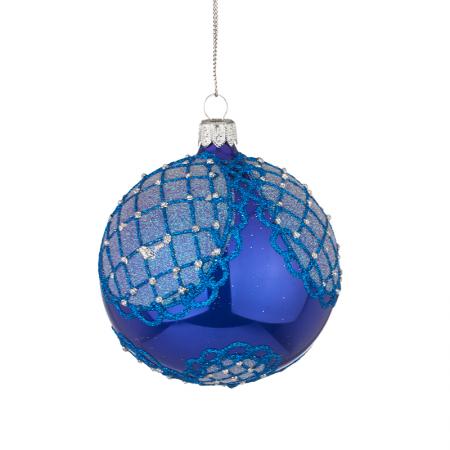 Продукти КОЛЕДНА УКРАСА За елхата Стъклени играчки Стъклена синя топка със сребърна декорация