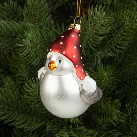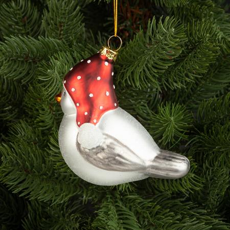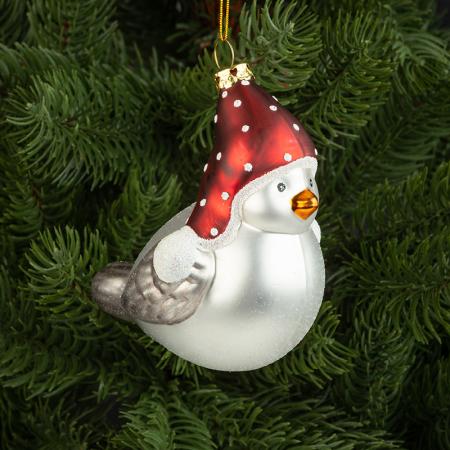 Описание: Стъклена коледна играчка птичка. Размери : 10 х 10 см.
