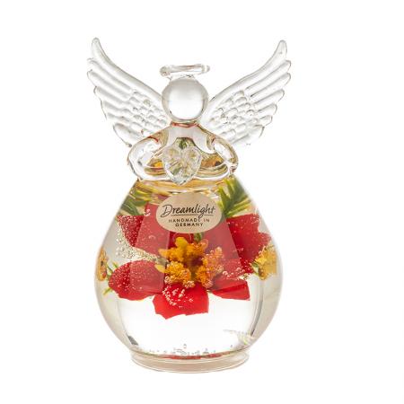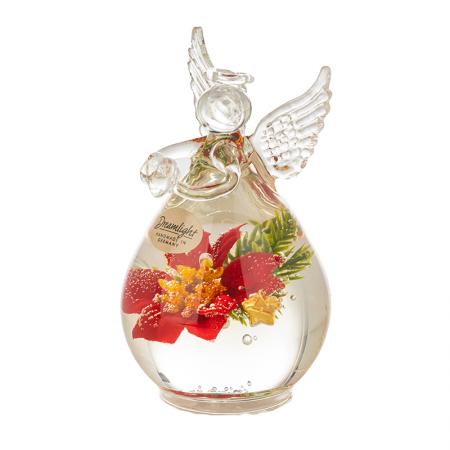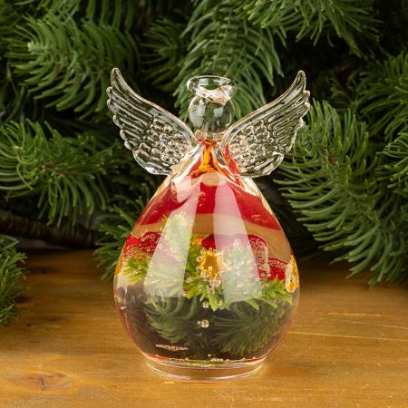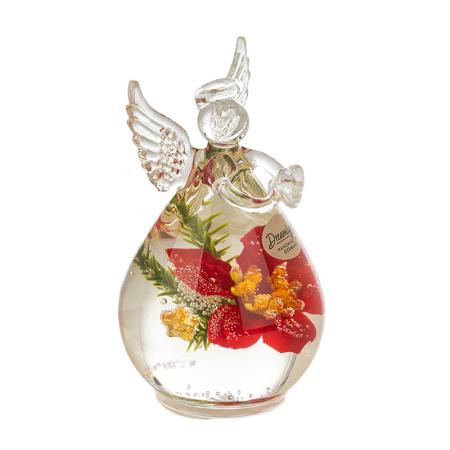 Описание: Стъклена фигура на ангел с коледна декорация. Размери: 10 х 6 см
