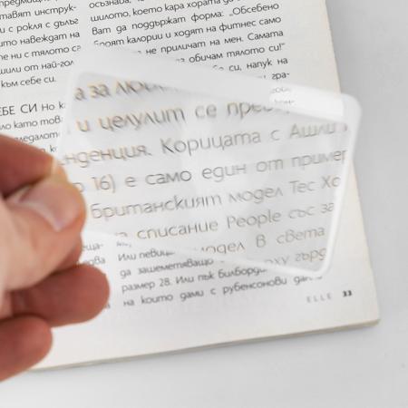 Описание: Тънка лупа тип „карта“ с 3-кратно увеличение и елегантен калъф. Размери на лупата: 85×53×0.4 мм. Материал: оптична леща с пластмасова рамка. Цвят на каъфа: черен с бяло лого Silver Flame