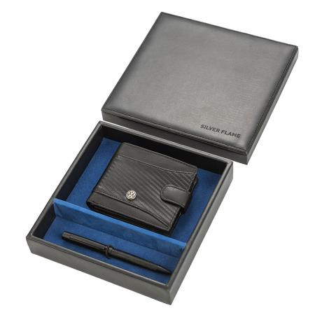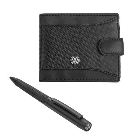 Продукти КОЖЕНИ ИЗДЕЛИЯ Луксозни подаръчни комплекти Мъжки комплект химикалка и портфейл Auto Set с логото на Volkswagen