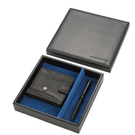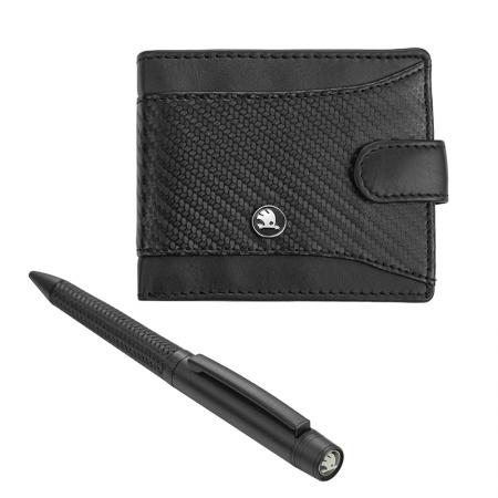 Мъжки комплект химикалка и портфейл Auto Set с логото на Skoda
