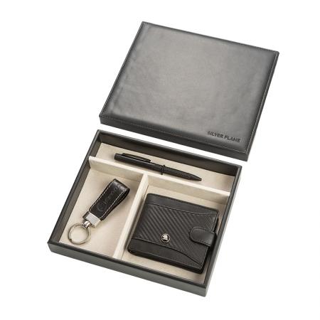 Продукти КОЖЕНИ ИЗДЕЛИЯ Луксозни подаръчни комплекти Мъжки комплект химикалка, портфейл и ключодържател Auto Set с логото на Skoda