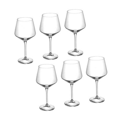 Описание: Чаши: Ø 11.3 см. Височина: 23.1 см. Вместимост: 720 мл. Стилен комплект от 6 чаши за вино, произведени от италианската фирма RCR Crystal. Чашите създават усещане за наслада от вкуса на виното с нестандартната си форма и изящен дизайн. Подходящи за почистване в съдомиялна машина. Подарете си финес и красота на масата с италианско качество.