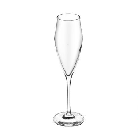 Описание: Чаши: Ø 6,8 см. Височина: 23,0 см. Вместимост: 180 мл. Стилен комплект от 6 чаши за шампанско произведени от италианската фирма RCR Crystal. Подходящи за почистване в съдомиялна машина. Подарете си финес и красота на масата с италианско качество и изящен дизайн.