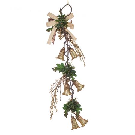 Златна коледна камбанка с шишарки