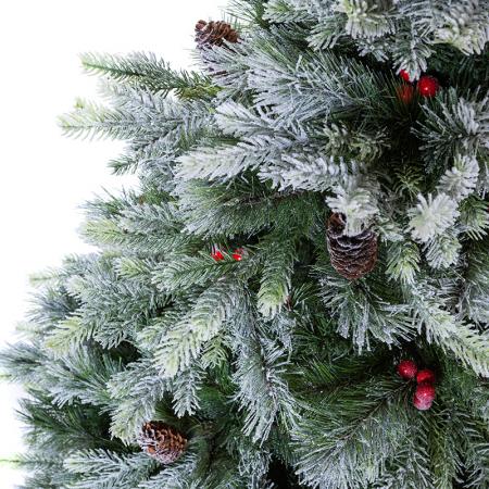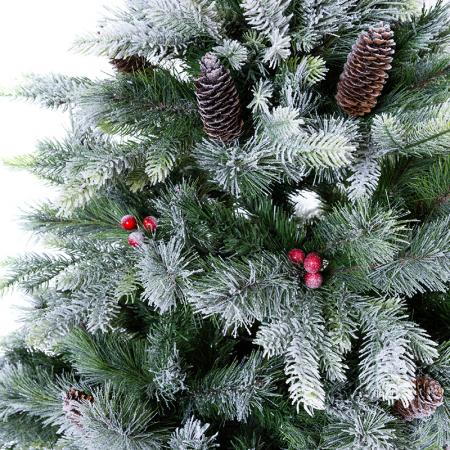 Описание: Изкуствена снежна елха с шишарки и червени плодчета. Размер 150 см