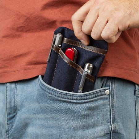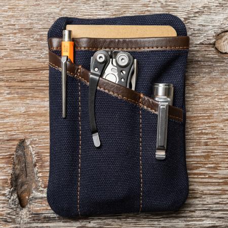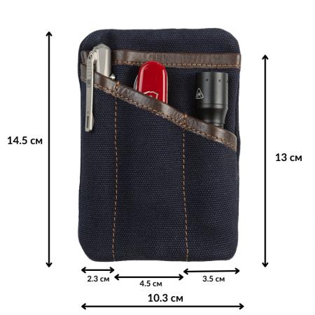 Описание: Джобен органайзер изработен от здрав импрегниран брезент, с подсилени ръбове от естествена телешка кожа. Размери: 10.3 x 14.5 cm