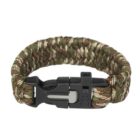 Описание: Текстилна гривна с пвц закопчалка, в която има вградена свирка и магнезиева запалка. Дължина: 24 см . Цвят: камуфлаж