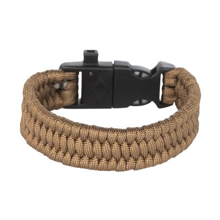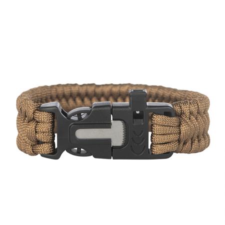 Описание: Текстилна гривна с пвц закопчалка, в която има вградена свирка и магнезиева запалка. Дължина: 23 см . Цвят: каки